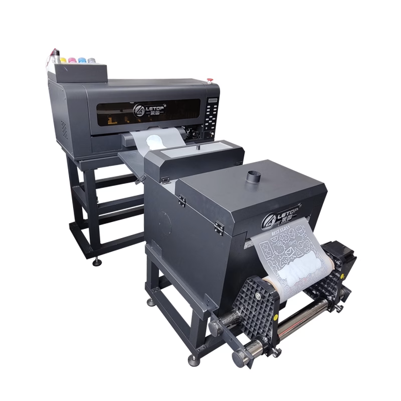 LETOP A3 DTF-принтер с двумя головками, автоматической системой подачи и сушки плёнки позволяет печатать изображения на PET-плёнке и переносить их на одежду с помощью высокотемпературного нагрева. Картинка надежно фиксируется, не выцветает и выдерживает стирку.